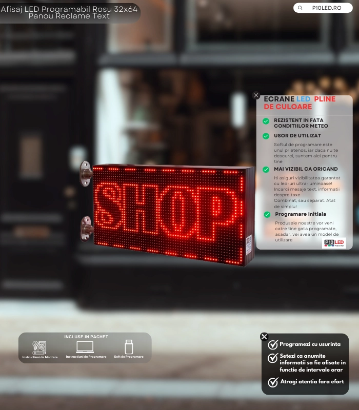 Trimite CERERE OFERTA pentu Afisaj LED Programabil Rosu 32×64 – Panou Reclame Text