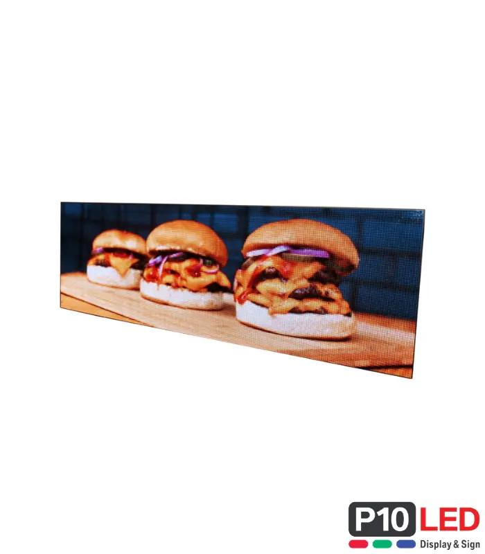 Ecranul LED exterior fast food / restaurant 96×250 cm este conceput pentru localuri HoReCa care vor sa atraga atentia clientilor din trafic si sa afiseze continut vizual modern direct la exterior.
