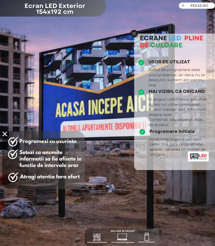 Acest ecran LED P3 exterior dezvoltatori imobiliari este o solutie premium dedicata companiilor care construiesc si vand ansambluri rezidentiale, cartiere noi si proiecte imobiliare de amploare. Nu este un simplu panou publicitar, ci un sistem vizual strategic pentru cresterea ratei de conversie si accelerarea vanzarilor.
