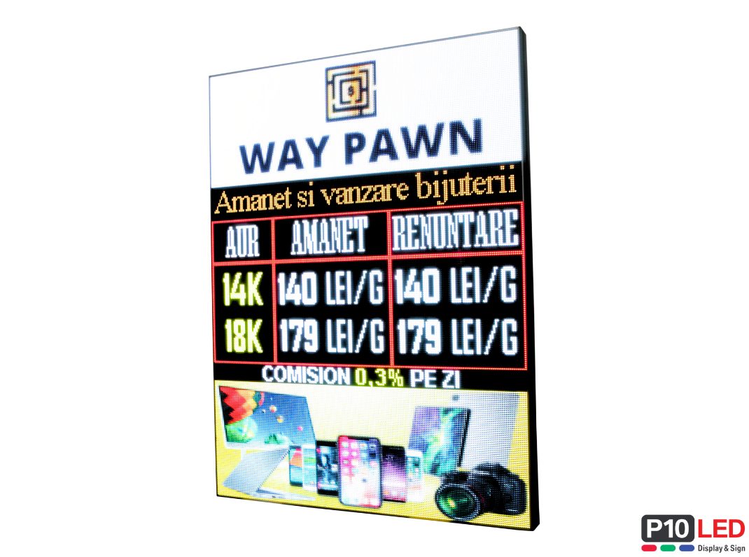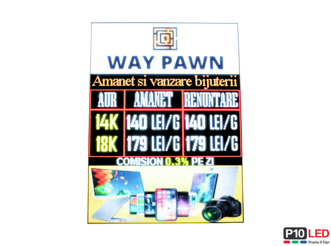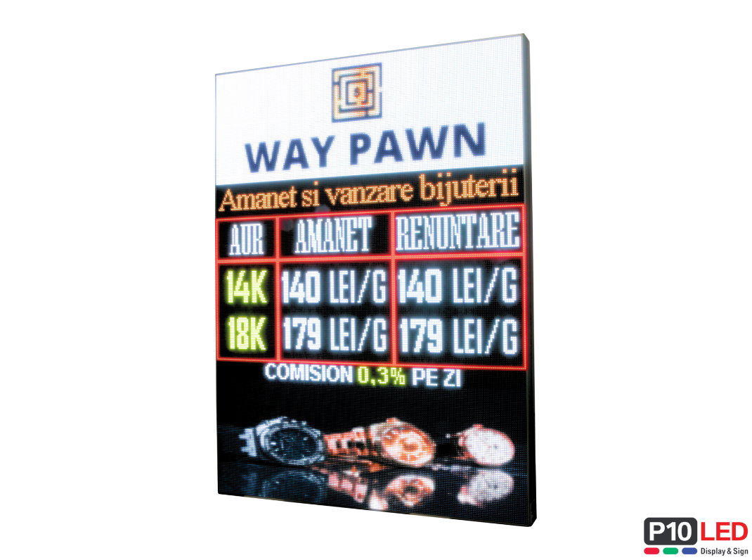 • Reclama LED pentru Schimb Valutar si Amanet poate afisa: mesaje text, dată, oră, poze,videoclipuri, gif-uri animate