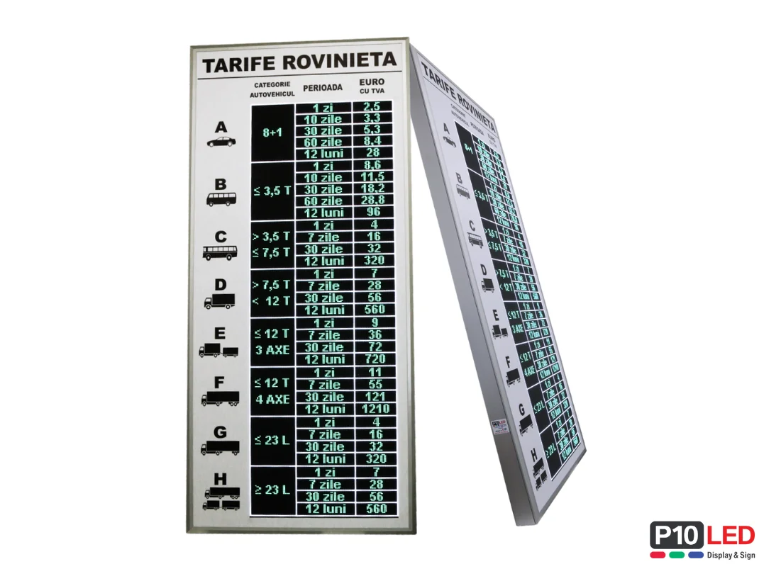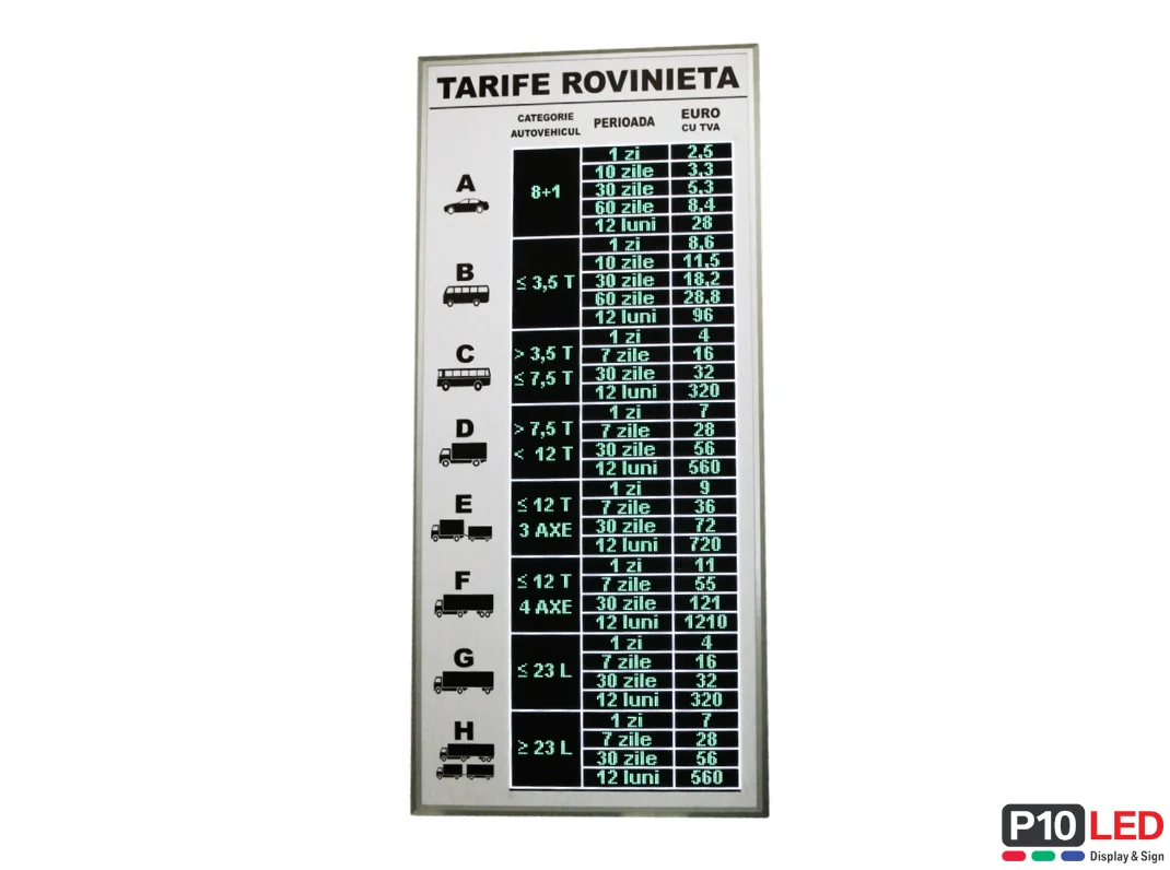 • numar de randuri Afisaj LED Informativ pentru afisarea TARIFELOR: 12 randuri